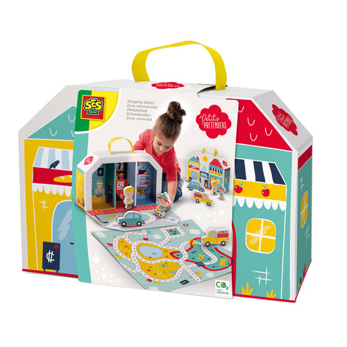 SES CREATIVE Petits Pretenders Children's Shopping District Play Suitcase and Play Mat, Unisex, Three Years and Above, Multi-colour (18013)