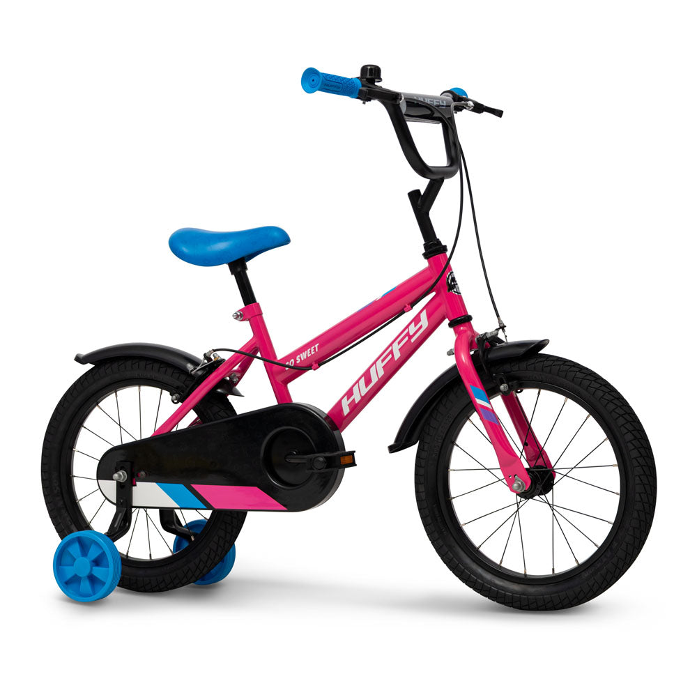 Bike rides on the Huffy So Sweet are a treat for your newer rider!. This 16-inch girls' bike with stabilisers is a great choice for young riders learning to grow in confidence on a bicycle. The stabilisers can be removed when your child is ready for riding on two wheels, and the front and rear steel sidepull caliper brakes offer efficient stopping. The simple but beautiful design will capture your rider's heart, and the fun she has will keep her coming back again and again to ride!.
