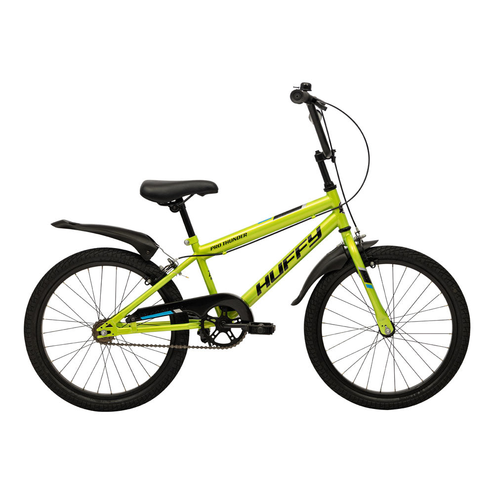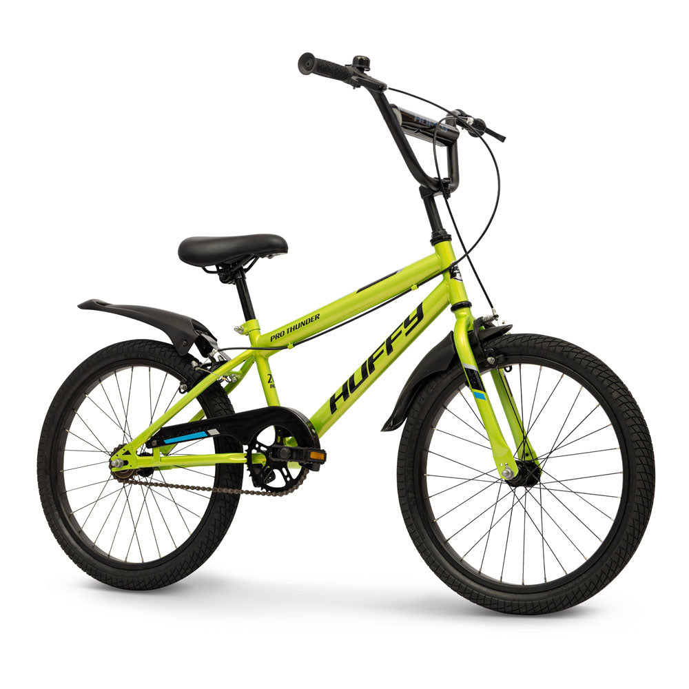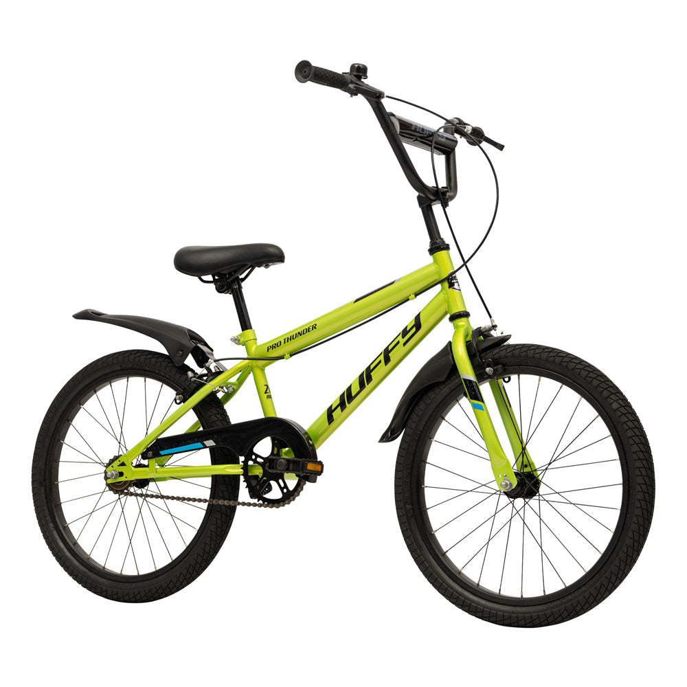 This bike certainly has the looks, but when your child hops on the Pro Thunder 20-inch bike from Huffy, they'll feel the boom of adventure!. This bright green bike for kids is an awesome ride for your child who is getting more comfortable and confident behind the handlebars of a bike and is ready to shed those stabilisers!. The bike includes front and rear steel sidepull caliper brakes, keeping your rider in control. The simple binder bolt makes height adjustments a breeze for growing riders. The Pro Thunder 20-inch bike is just what your child needs for outdoor adventure!.