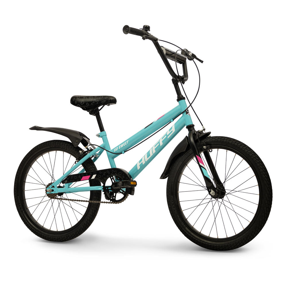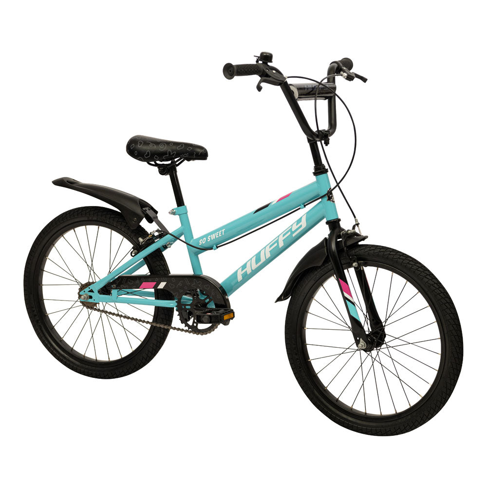 Every adventure is sure to be sweet on this 20-inch girls' bike from Huffy. When your child hops on the Huffy So Sweet 20-inch bike, she'll be eager to get rolling!. This bright blue bike for girls is an awesome ride for your child who is getting more comfortable and confident behind the handlebars of a bike and is ready to shed those stabilisers!.?The bike includes front and rear steel sidepull caliper brakes, keeping your rider in control. The easy-adjust seat makes height adjustments a breeze for growing riders, too. The So Sweet 20-inch bike from Huffy is just what your child needs for outdoor adventure!.