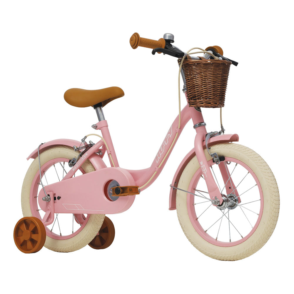 Allow your kiddo to take a ride back in time on this classic 14-inch girls' bike from Huffy. Designed to have that quintessential classic look, this bike is perfect for your newer rider to master the art of life on a bicycle! Equipped with front and rear steel sidepull caliper brakes and removable stabilisers, your child stays in control as she rides. The padded saddle and soft grips keep little ones comfortable, while parents can appreciate the safety of the stabilisers and fully enclosed chainguard. This adorable bike also includes a front basket to store toys or other goodies, and the fenders keep your rider clean and dry. Take a cruise on this classic from Huffy!.
