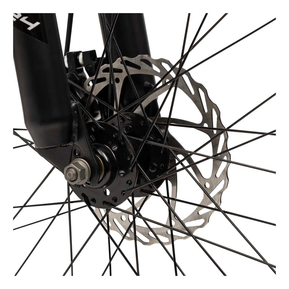 Equipped with 21 Shimano TZ500 gears, pedalling is a breeze on climbs or when you want to increase your speed on paths and trails. Thanks to the Shimano TS39 thumb shift, selecting a gear is quick and accurate. Braking is strong and reliable thanks to the dual mechanical disc brakes with 160mm rotor at the front and 140mm at the rear. Enough braking power for the most extreme rides.
