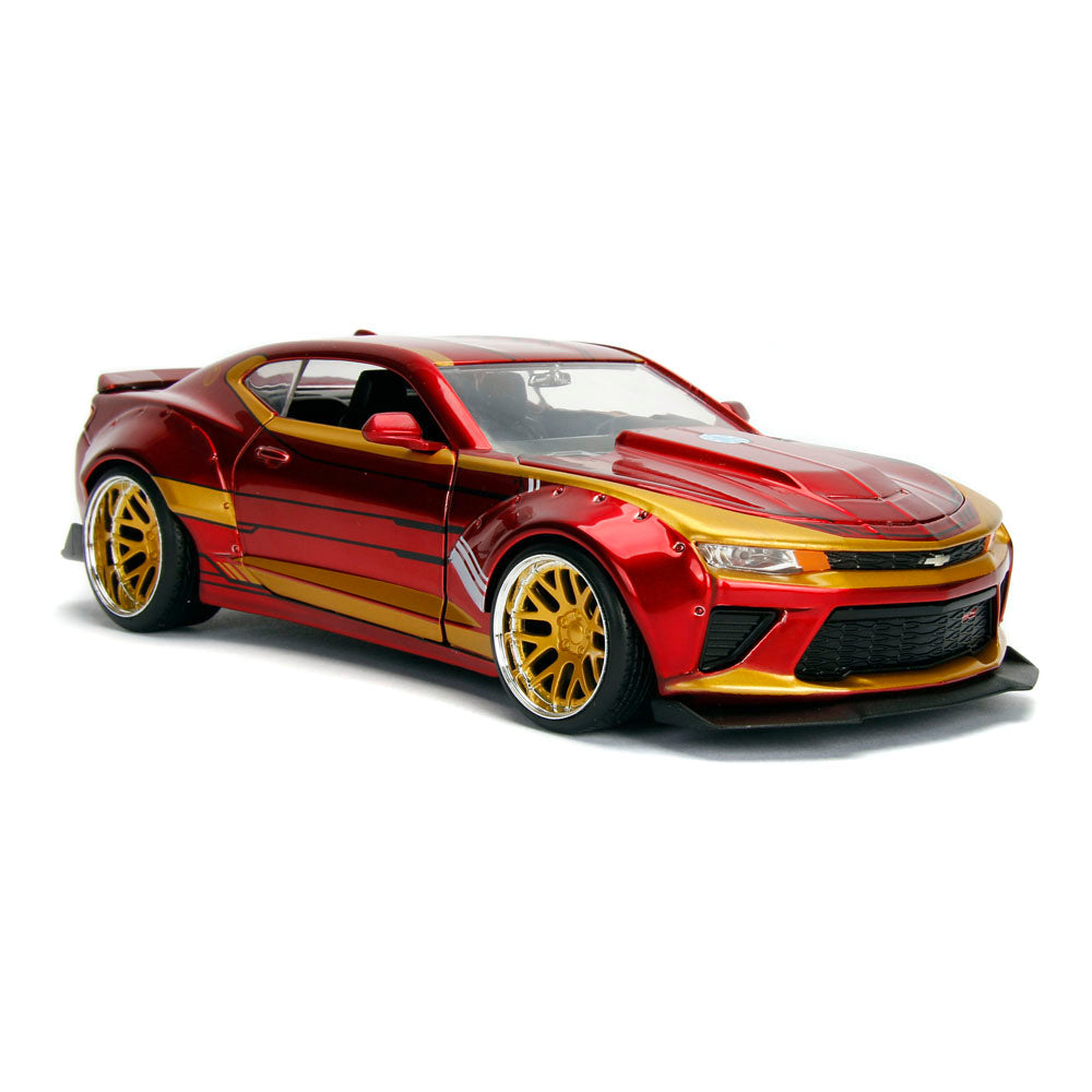We all know Iron Man uses his suit of Armour to fly around as an avenger, and we all know Tony Stark, the man behind the armour is a tech billionaire who drives fancy cars and lives a lavish life. But, what if Iron Man had a road car, what sort of car would the he drive? Well the 2016 Chevy Camaro SS is the answer. Inspired by Iron Man, the 2016 Chevy Camaro is designed and themed around the avenger. The die-cast car is 1:24 scale and includes opening parts. Also, included is a mini metal Iron Man figure.